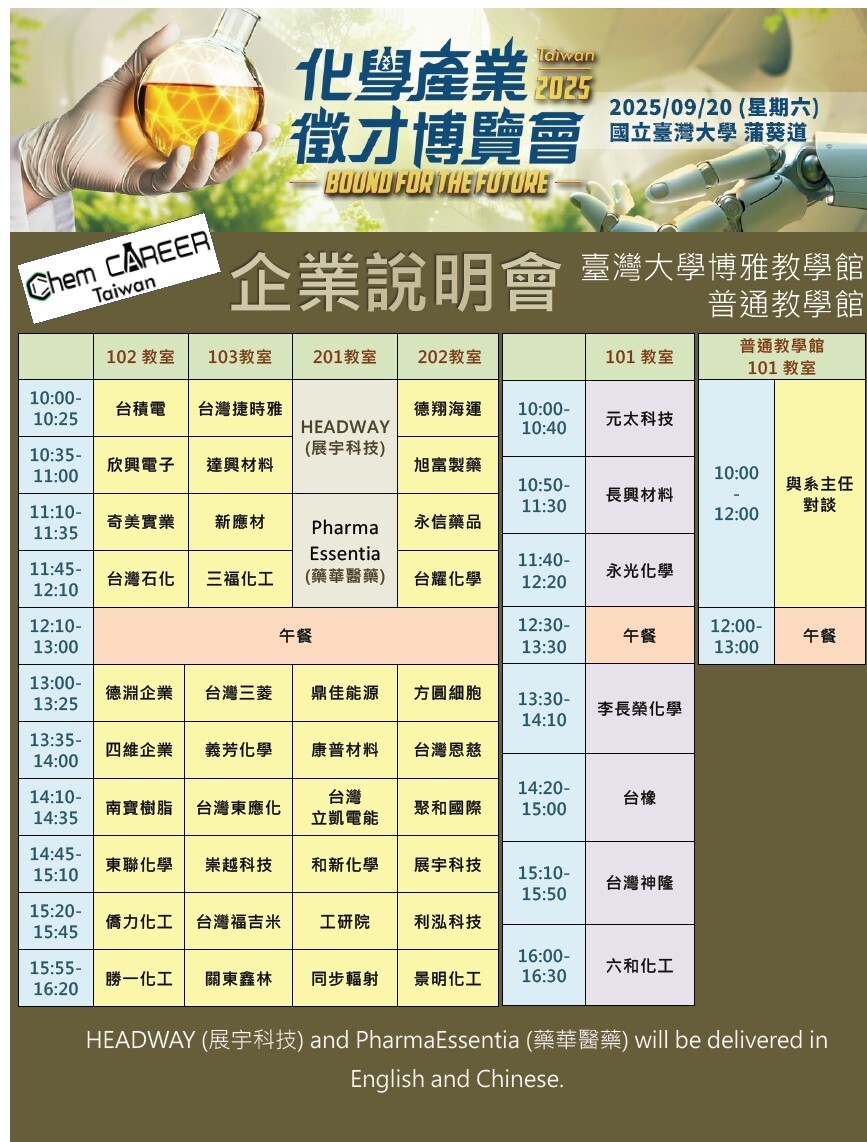 【徵才啟事】國立臺灣大學 化學產業徵才博覽會 2025/09/20(星期六)